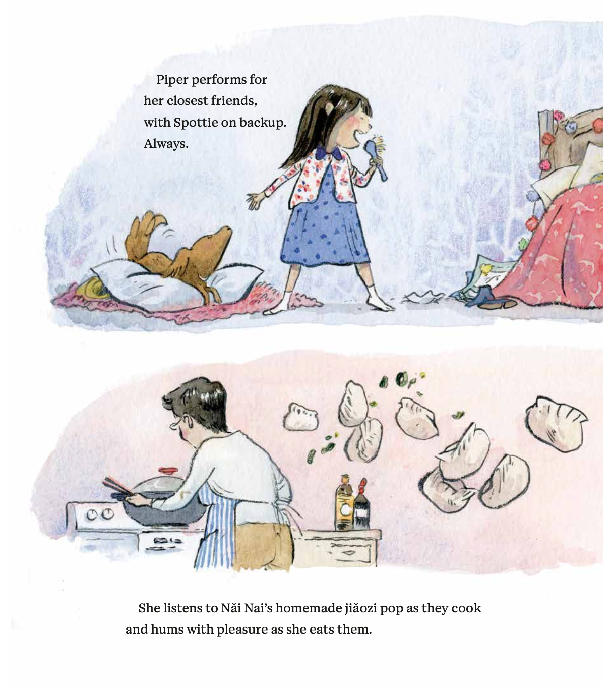 New York Times Bestseller, Piper Chen Sings is a story about a young girl who loves to express herself through singing but is struck with self-doubt and nervousness when asked to perform a solo in front of an audience. Piper tells her Nai Nai that she felt “like butterflies were having a dance party” in her belly; she doesn’t feel she can sing in front of others without making a mistake. Thankfully, Nai Nai teaches Piper that feeling butterflies means “something exciting was ahead”, and that recognizing and welcoming that anxious feeling would help it pass. Nai Nai’s advice empowers Piper, who finds her voice on stage.
